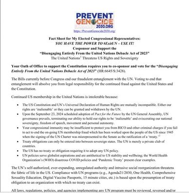 FORCE CONGRESS TO PASS THE “DISENGAGING ENTIRELY FROM THE UN DEBACLE ACT OF 2023”